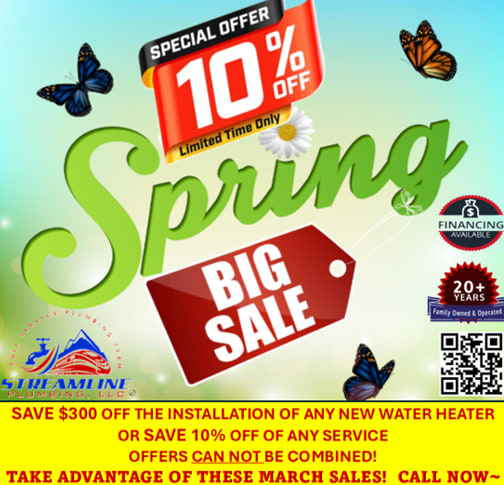 Limited Time Offer. Take advantage of a special offer of 10% off any service or save $300.00 off the installation of a Streamline Plumbing provided new Water Heater. Offers expire on March 31st, 2026!