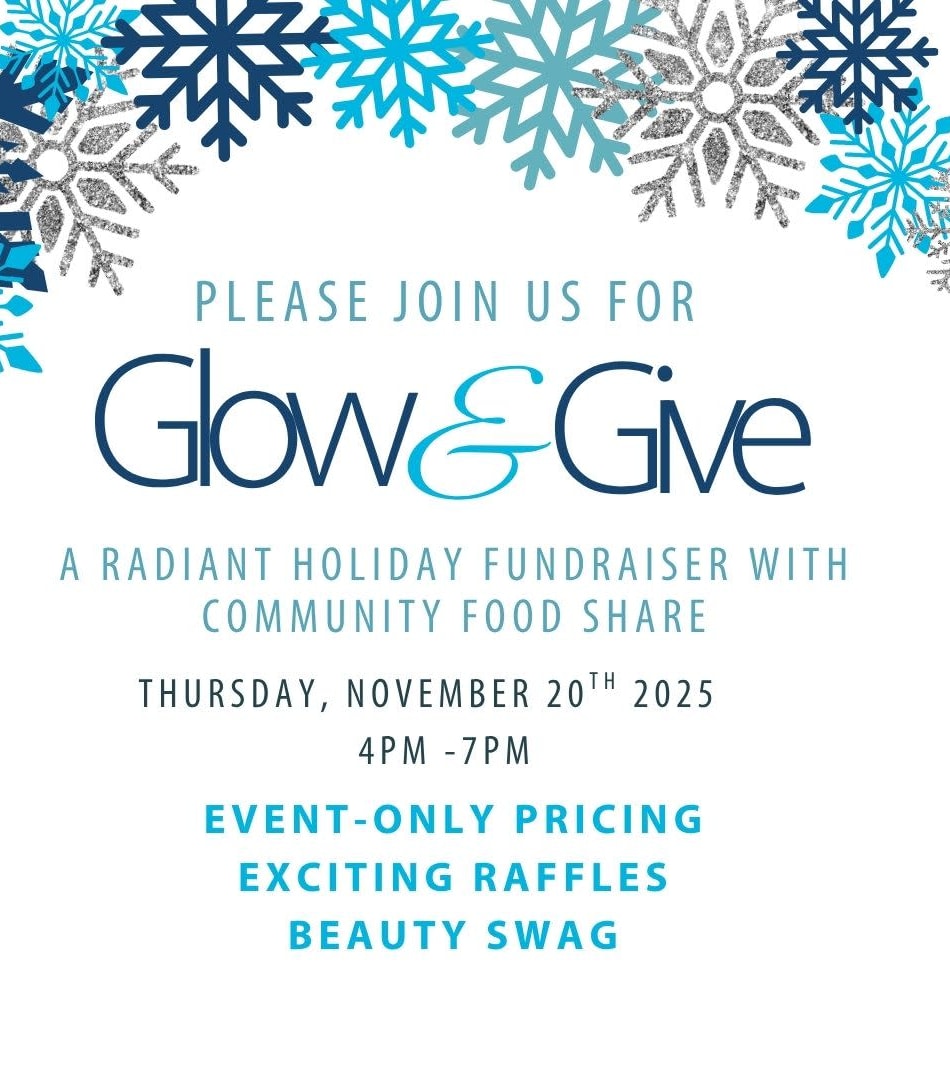 Give Back. Glow Bright. Feel Beautiful — Inside & Out. Celebrate the season with an evening that’s all about feeling great and doing good. Your attendance helps support feeding our community through Community Food Share while you enjoy an unforgettable night filled with beauty, music, and community spirit.