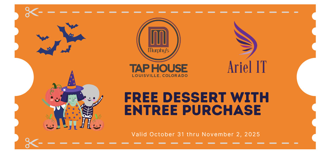 Present this coupon for a Halloween treat courtesy of Ariel IT Services & Murphy's Tap House