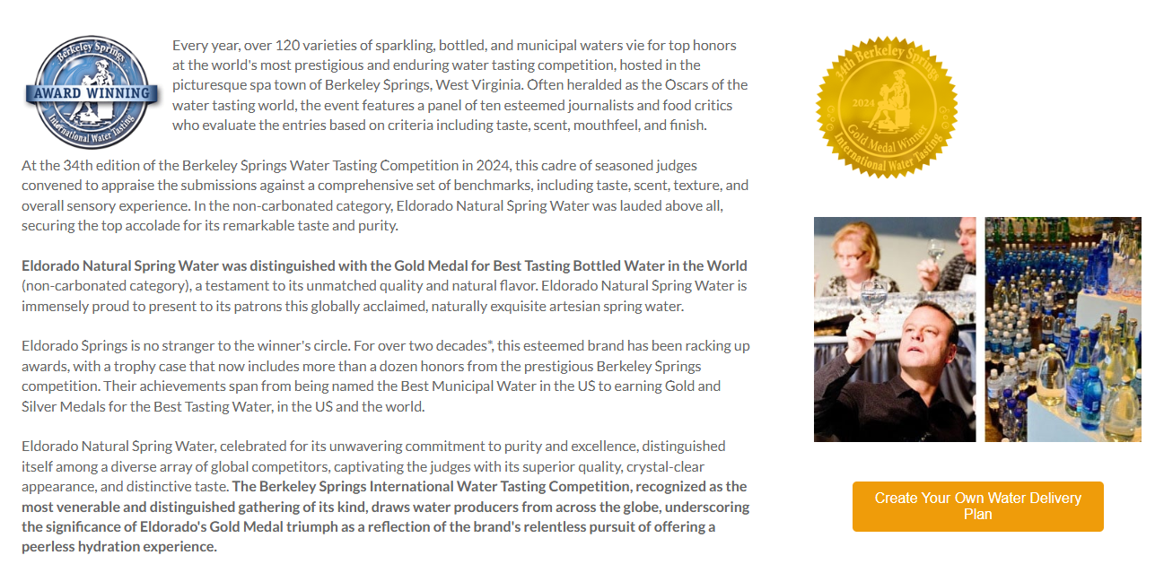 Eldorado Springs Water Wins Award for Best Spring Water In The World!