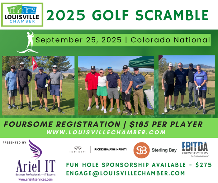 Exciting news for all Golf Scramble enthusiasts! Ariel IT is proud to be the title sponsor for the Louisville Chamber 2025 Golf Scramble at Colorado National. The weather forecast is perfect for a day out on the course. Don't miss out, secure your spot now!