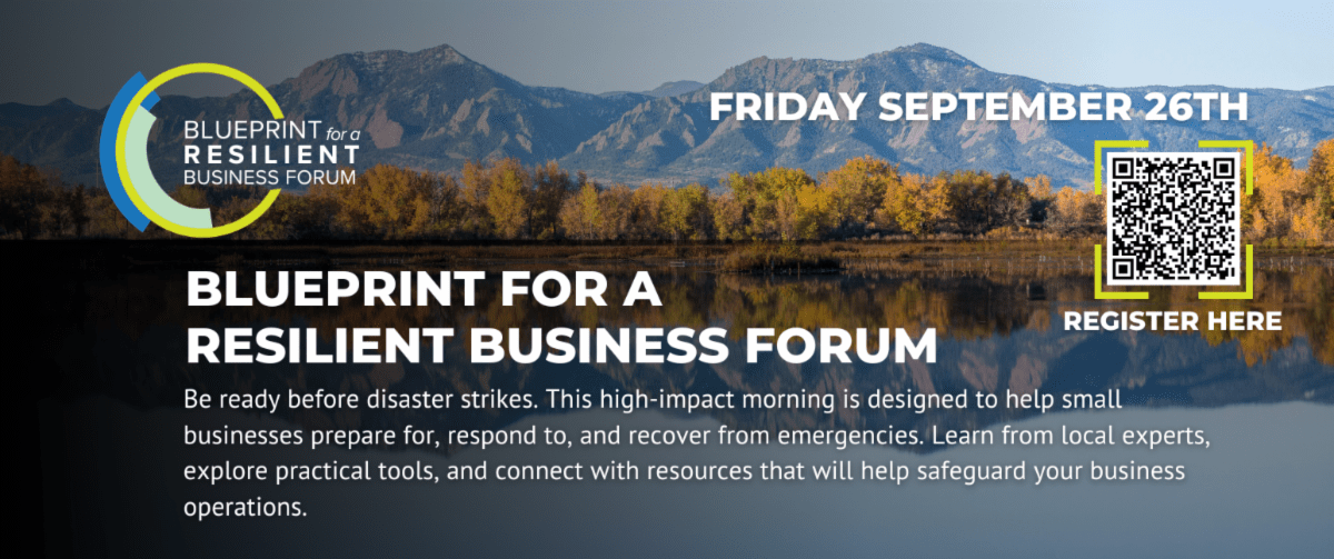 Join us Friday, September 26, 2025, from 8:00 am–12:00 pm at the University Memorial Center, CU Boulder, for the Blueprint for a Resilient Small Business Forum — a half-day, no-cost event packed with tools, insights, and resources to help your business withstand anything the world throws its way.